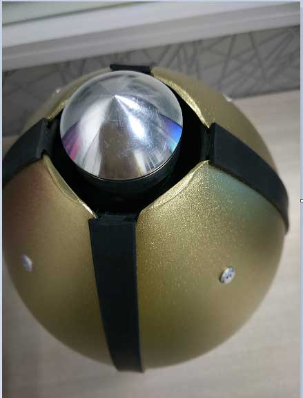 避雷针用四块独立的极板代替球形的极板,使得接闪端子的增强电场强度的能力更符合1:15(200KV:3MV)。